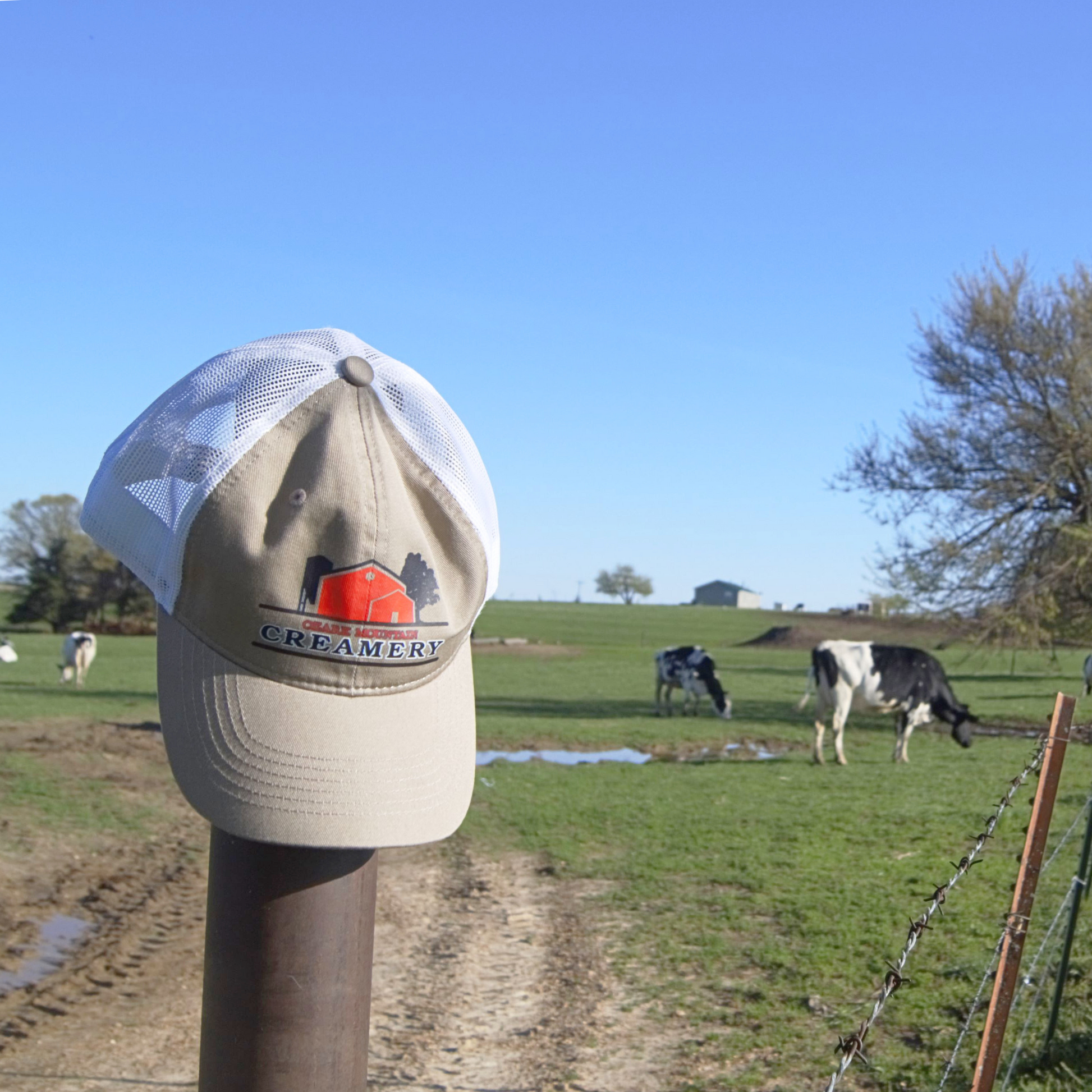 Ozark Mountain Creamery Tan/White Unstructured Adult Cap Screenprint Logo